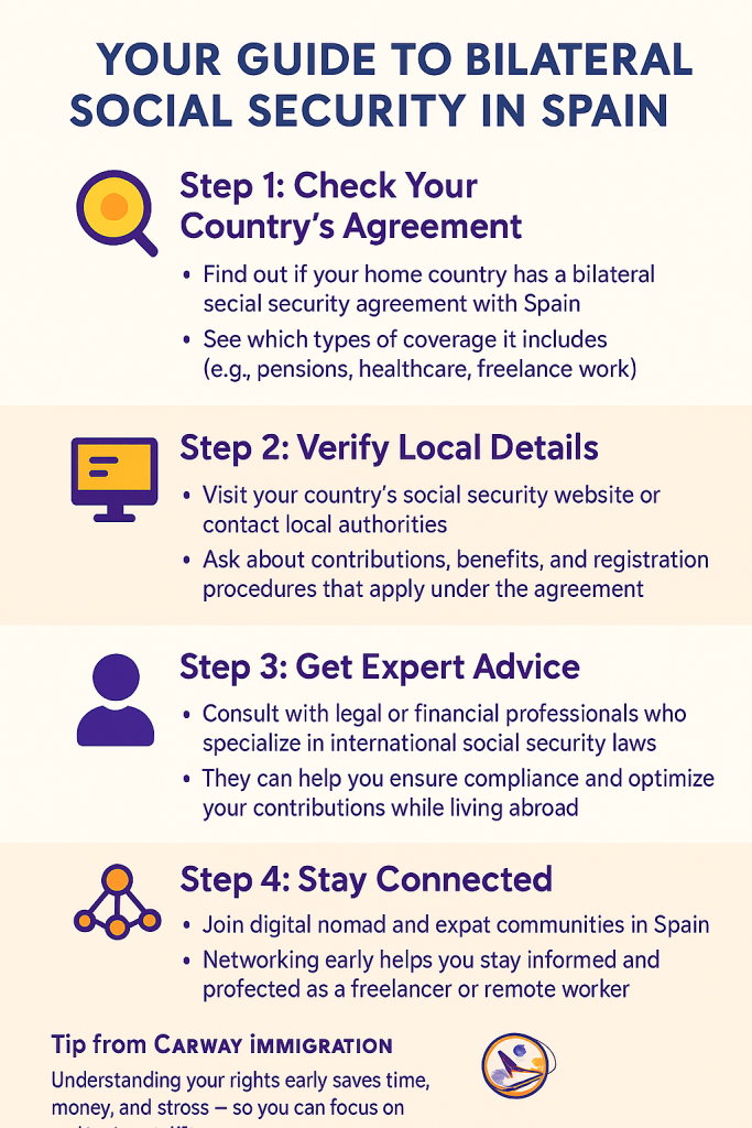 Navigating through social security regulations can seem daunting, but it doesn’t have to be! Here’s a straightforward guide to checking your eligibility for bilateral social security in Spain. First, start by determining if your home country has a bilateral agreement with Spain and what types of social security coverage it includes for freelancers.